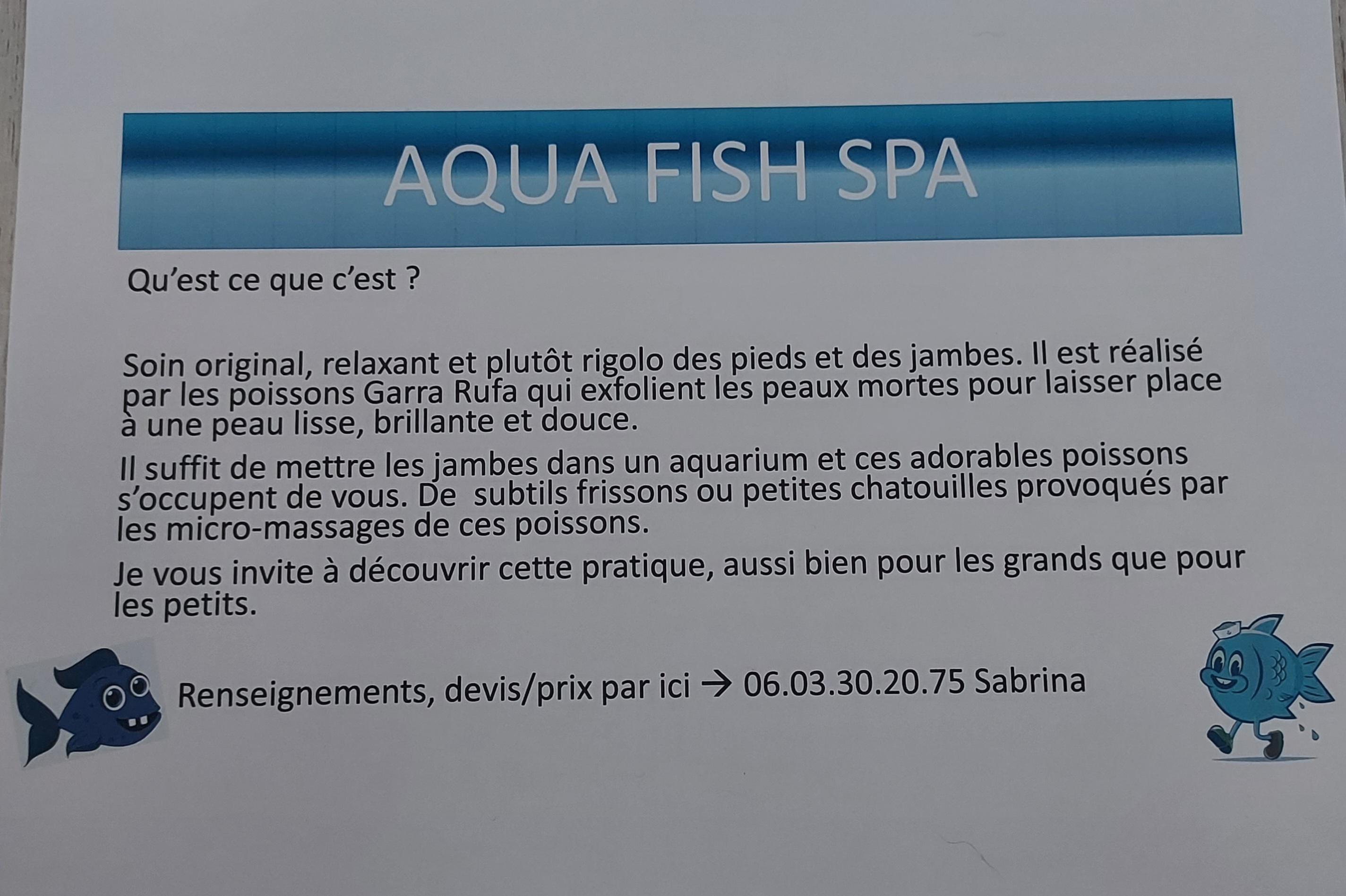 Voici toutes les informations sur le Spa à poissons Aqua fish spa qui ce trouve au 24 Rue Gambetta, 33230 Coutras (33). Sur cette fiche vous trouverez les photos, l'adresse, les horaires d'ouverture, le numero de téléphone et les avis clients.Vous pouvez églement rédiger un avis si vous le souhaitez en bas de page.