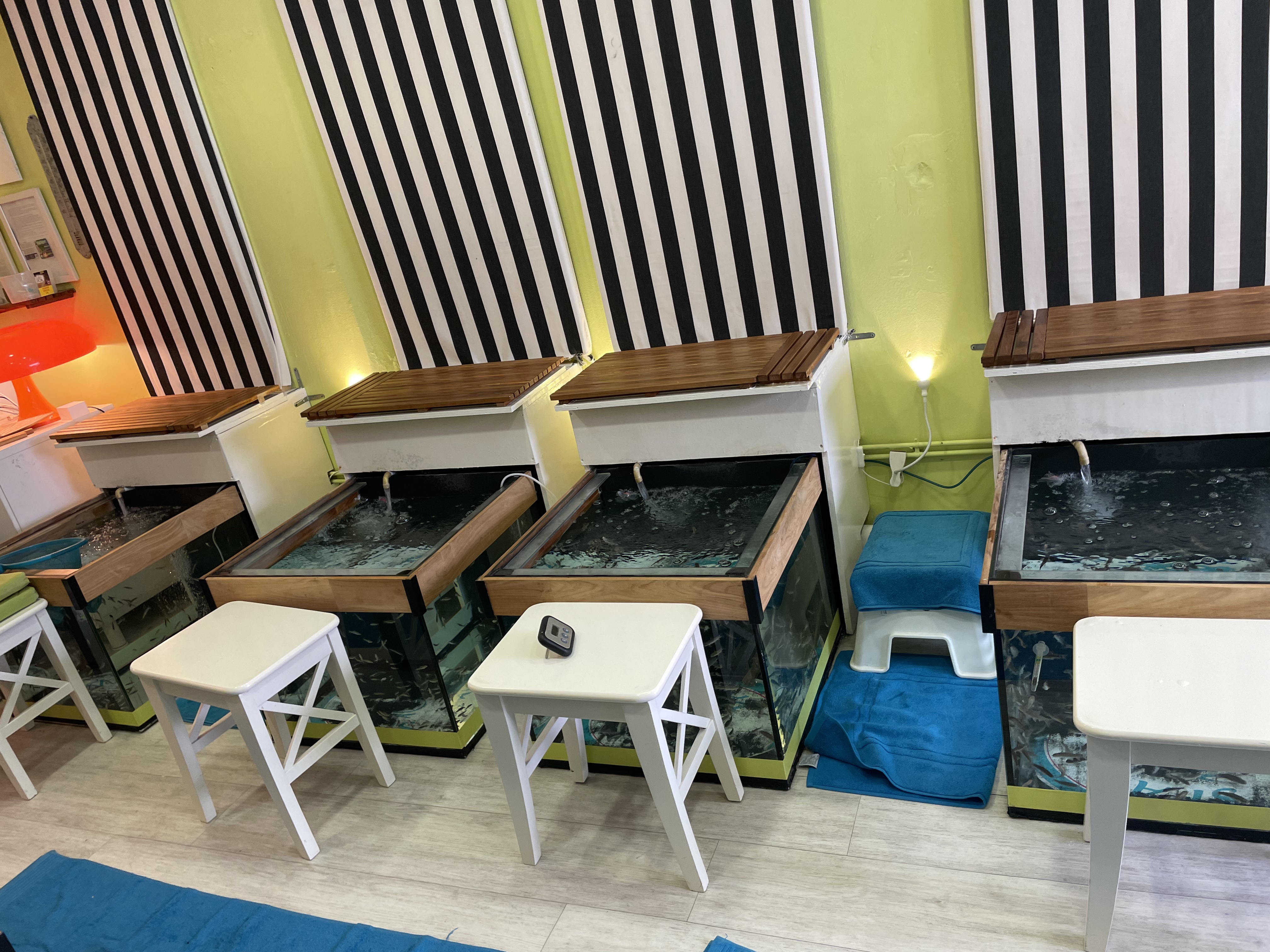 Première expérience très concluante, pour un moment de détente en amoureux! Les poissons docteur sauront s'occuper de votre petons. Le gérant est aux petits soins avec vous, lieu très propre, hygiène remarquable. Un moment reposant et réussi en partie grâce au propriétaire. Nous vous recommandons cette parenthèse, vous y passerez un moment agréable à coup sur !
